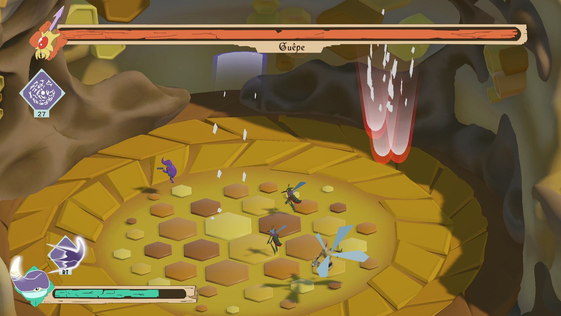 Vous y incarnez Ari, petit scarabée qui doit se battre contre la terrible armée des guêpes et des moustiques qui a envahi le royaume, et dont il est le dernier survivant. Explorez, combattez, et améliorez votre personnage dans ce twin-stick shooter low-poly semi open world aux éléments de rogue, et avec sa carte générée procéduralement, et son univers mignon mais périlleux. Combien d'essais vous faudra-t-il pour pouvoir défier la terrible Reine des Guêpes ?